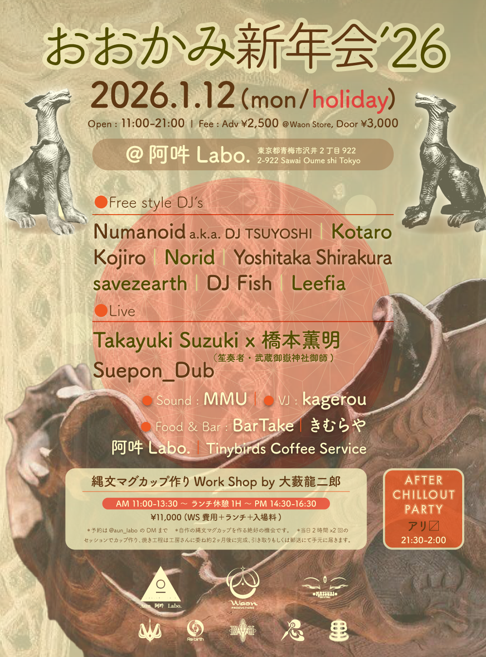 2019年に縄文土器作家大藪氏がオオカミの焼き物を奉納し産まれた”おおかみ奉納祭 2020 武蔵御嶽神社”。そのメンバーを中心に新年会を企画。